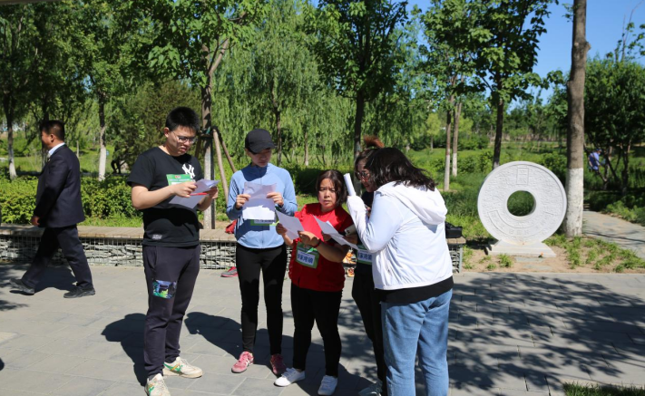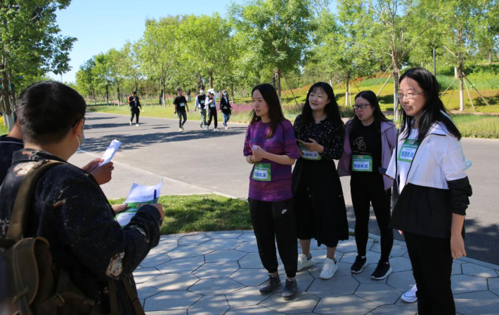 本次比賽沿城市綠心森林星型園路設(shè)置10個競賽點,每支參賽隊伍對應(yīng)2個競賽點,每個競賽點設(shè)置5道必答題及2道風險題。內(nèi)容聚焦生態(tài)環(huán)保、綠色發(fā)展等方面。比賽開始后,參賽隊伍迅速尋找各自對應(yīng)競賽點開始答題。